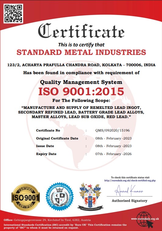 STANDARD METAL INDUSTRIES is a growing name in Lead Recycling & Process industries of India. The company is promoted to Manufacture Remelted Lead and Lead Alloys and its allied Products. In order to make the best quality lead available and to conserve the already limited, we constantly try recycle as much as we can to protect the environment.